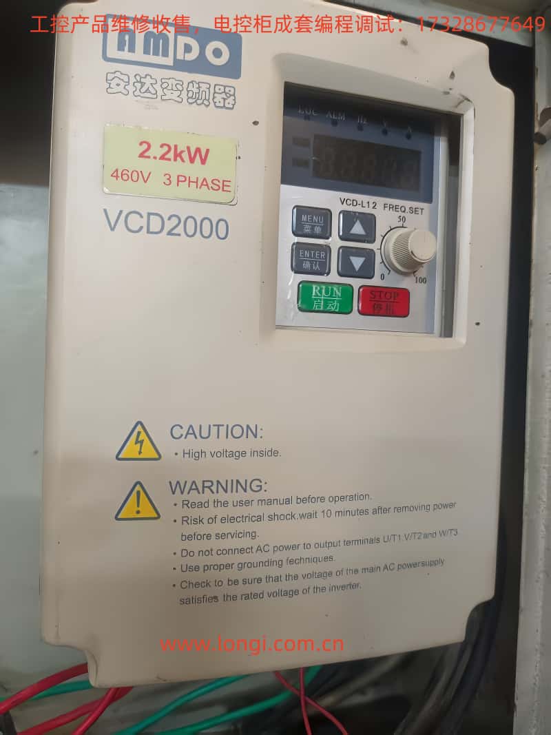 一(yī)、操作麵板功能介紹1.1操作(zuò)麵板布局安達變頻器VCD-2000係列(liè)的操作麵板簡潔(jié)明了,主要(yào)包括以(yǐ)下幾個部分:數碼管顯示屏:用於顯示(shì)變頻器(qì)的運行狀態、設(shè)定頻率、輸(shū)出頻率等參數。功能鍵:包括運行鍵、停(tíng)止/複位(wèi)鍵、功能/數據鍵、點動/反轉鍵、增加鍵(jiàn)、減少鍵、移位/監控鍵和(hé)存儲(chǔ)/切換鍵。模擬(nǐ)電位器:用於手動調節輸出頻率。指示燈:包括(kuò)正轉指(zhǐ)示(shì)燈、...